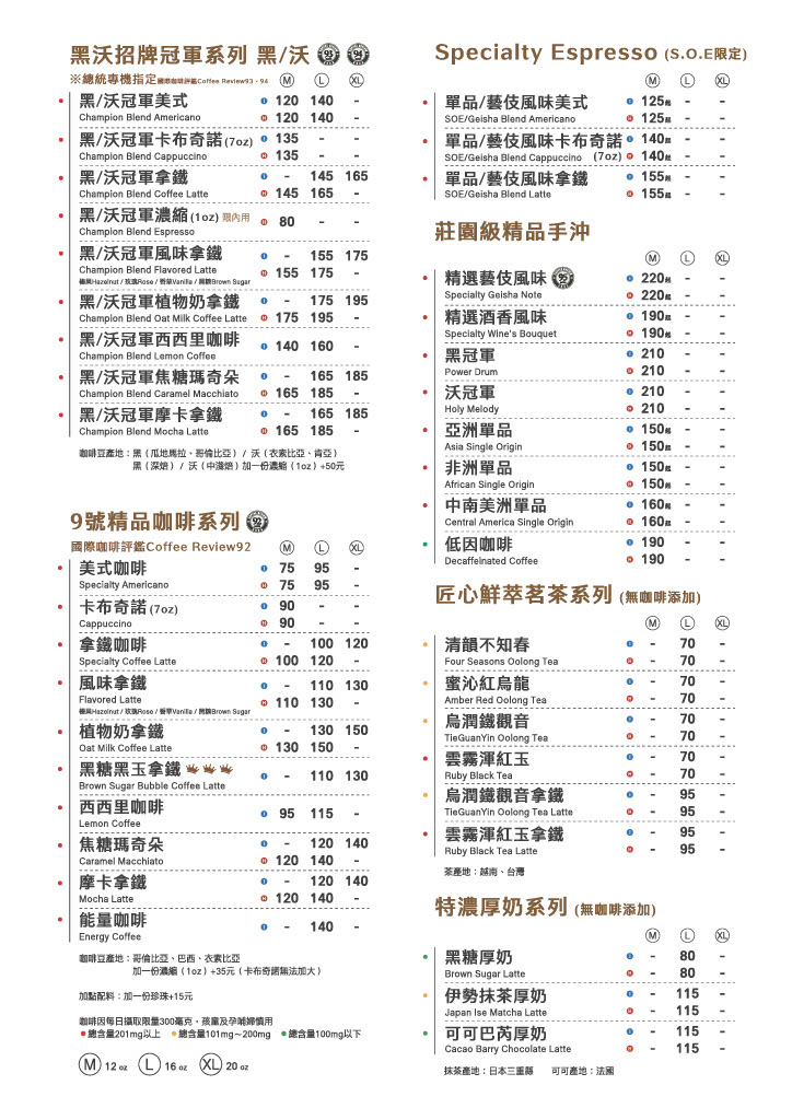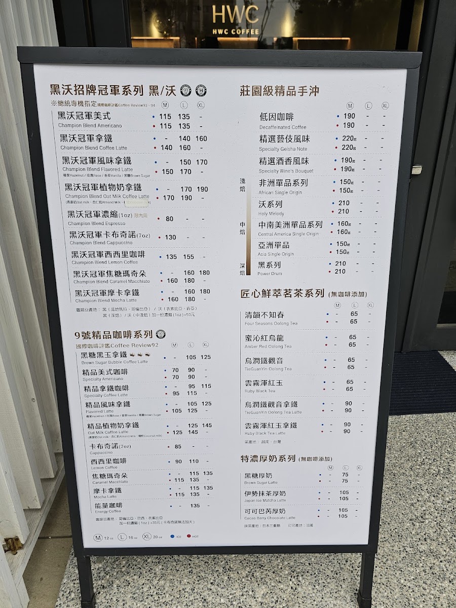 HWC 黑沃咖啡 | 桃園青埔店 三公里內單筆滿500元即可外送 (超過三公里煩請來電洽詢) | 精品咖啡 | 手沖、咖啡豆、濾掛選項多 Menu